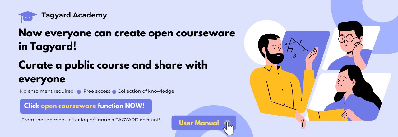 Welcome to Tagyard open courseware! We believe everyone has a great experience and let's start explore in our open courseware market for free!